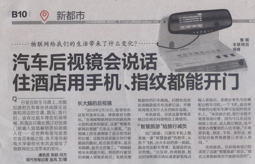 | 【現(xiàn)代快報(bào)】汽車后視鏡會(huì)說話 住酒店用手機(jī)、指紋都能開門 |