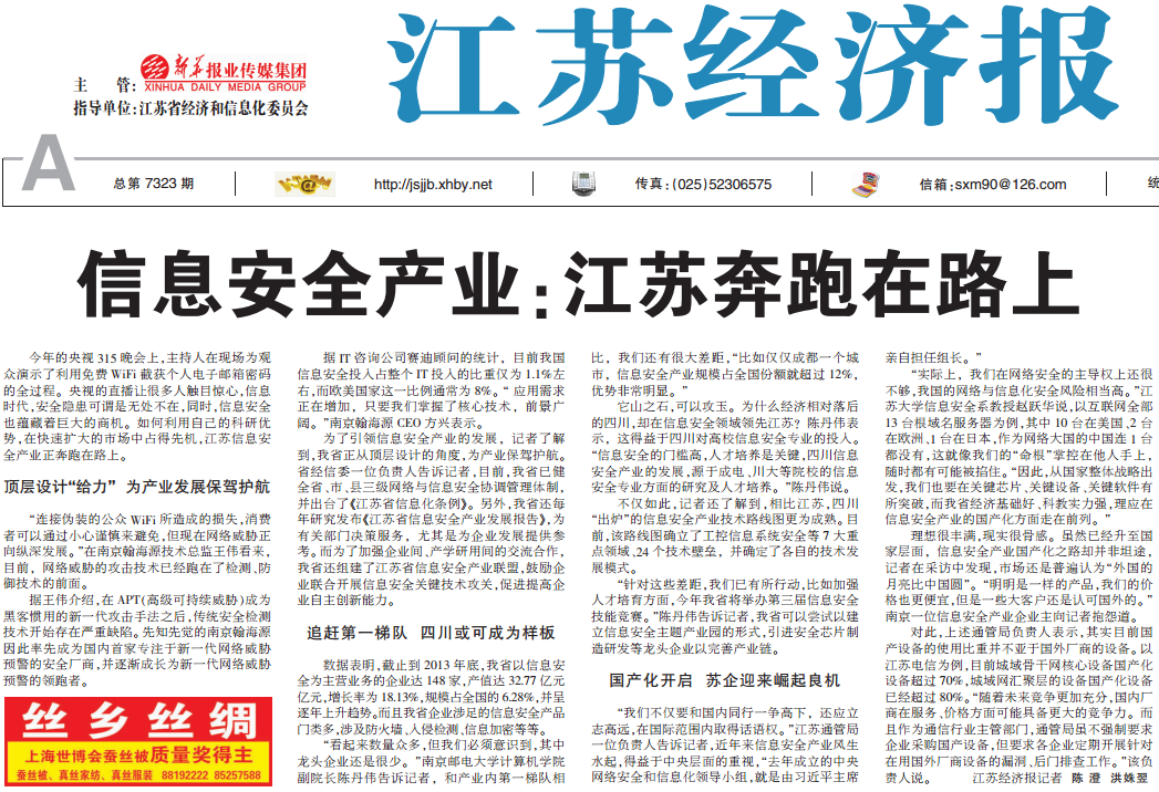 【江蘇經濟報】信息安全產業:江蘇奔跑在路上