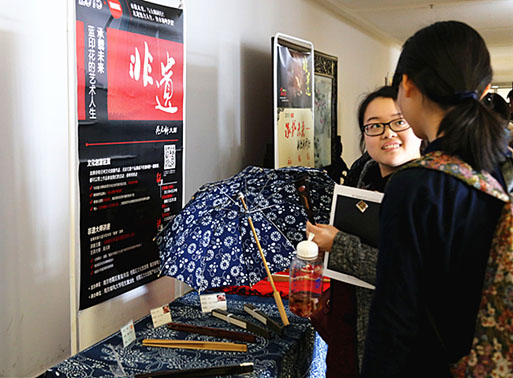 吳元新教授現(xiàn)場展示藍印花布制作工藝 據(jù)了解,本次活動由走進非遺藝術(shù)人生現(xiàn)場講座、非遺項目跨界合作產(chǎn)品路演、“創(chuàng)客”分享會沙龍、菁英人才創(chuàng)業(yè)培訓、創(chuàng)意項目推介等5個模塊內(nèi)容組成。走進非遺藝術(shù)人生現(xiàn)場講座,將陸續(xù)邀請南京市范圍內(nèi)的國家、省市非物質(zhì)文化遺產(chǎn)傳承人以及省內(nèi)非物質(zhì)文化遺產(chǎn)傳承人做客高校,講述傳統(tǒng)文化背后的藝術(shù)信仰與民族精神。非物質(zhì)文化遺產(chǎn)項目具有較強烈的地域民族文化特色,每期活動將在產(chǎn)品的融合創(chuàng)新上,積極促進大師們藝術(shù)合作與創(chuàng)新,結(jié)合現(xiàn)代科技、時尚設(shè)計等要素,推出跨界合作產(chǎn)品,并在活動現(xiàn)場實施展演,打造高度體驗感的創(chuàng)客文化。同時,在活動宣傳實施期間,主辦方將遴選對文化創(chuàng)意有專長、有實踐的同學開展重點創(chuàng)新創(chuàng)業(yè)指導工作,邀請非遺大師、優(yōu)秀創(chuàng)業(yè)家、資深創(chuàng)業(yè)導師面對面交流,通過沙龍、培訓、項目推介等活動幫助行業(yè)人才快速成長,創(chuàng)意項目生根發(fā)芽。