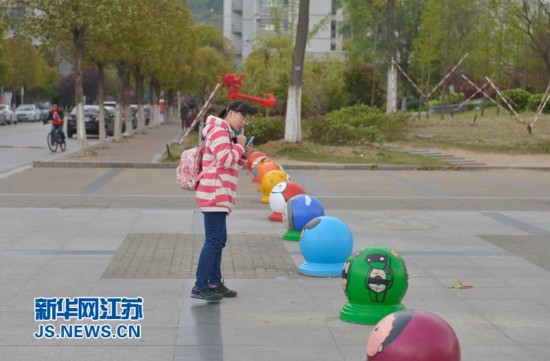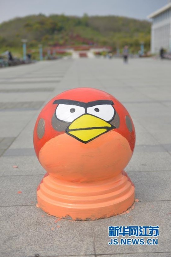 南京郵電大學內的“憤怒的小鳥” 大白、海綿寶寶、哆啦A夢……近期,南京郵電大學的學生發現,校園里又增加了一大波可愛的卡通形象路障球。 去年夏天,南郵的學生們曾創作過一組以多啦A夢造型涂鴉的路障球,迅速走紅網絡。近期,為迎接學校校慶,智慧靈巧的小伙伴們又在路障上涂鴉了大白、海綿寶寶等形象,再掀校園“萌潮”。這些萌萌的路障球均出自傳媒與藝術學院的二十多位同學之手。該院學生會主席朱林同學介紹說:“一個路障球需要花上4個小時才能裝扮好。同學們積極性很高,從4月11日上午九點就開始畫了。” 目前,這70多個路障球分布在學校圖書館、教學樓、南大門等三個區域,展現了學校形象、青春、運動、安全等主題,成為一道靚麗的風景線。