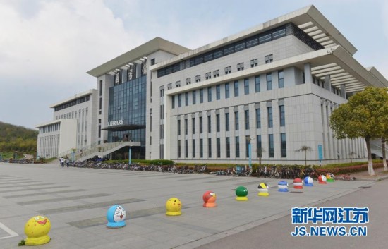 在南京郵電大學圖書館門前的“卡通萌寶”們。