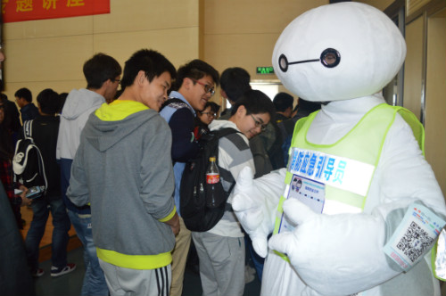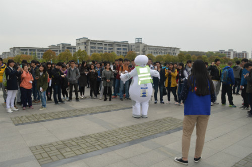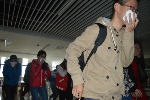 2015年4月15日南京郵電大學圖書館消防演練活動正式拉開帷幕。學生們走到圖書館前,發現門口多了個“大白”,正當納悶時候,“大白”過來引導大家進入報告廳,原來“大白”是特邀消防引導員。本次活動邀請了仙林消防中隊呂指導員作報告,首先保衛處倪可副處長對圖書館演練工作進行了動員,然后呂指導員進行了一個小時的消防疏散安全講座。正當同學們以為常規講座結束準備離場的時候,“大白”又一次冒出來了,“哇塞”的聲音此起彼伏,保衛處消防科吳老師用詼諧幽默的語言向大家打招呼,跟“大白”互動著提問現場同學,同學們的答題熱情不斷高漲。在吳老師講解了接下來的消防疏散注意事項后,大家來到三樓自然閱覽室,體貼的消防志愿者們已經為每人準備好了一條毛巾。大家按次序坐好,工作人員按照預案點燃煙餅,火警隨即響起,500多人有條不紊的疏散至圖書館一樓西側廣場。同學們下樓后發現頭頂上居然盤旋著一架無人機,不停的將現場疏散圖像傳播給指揮大廳。滅火演練大家都爭先恐后參加,現場同學表示,這么一次別出心裁的演練,給自己留下了深刻的印象,以前通過單純的講座學到的都只是書面消防知識,通過這樣一次全方位的演練,基本的消防流程全部都親身實踐了一遍,大家都對這次學校消防安全演練點贊。