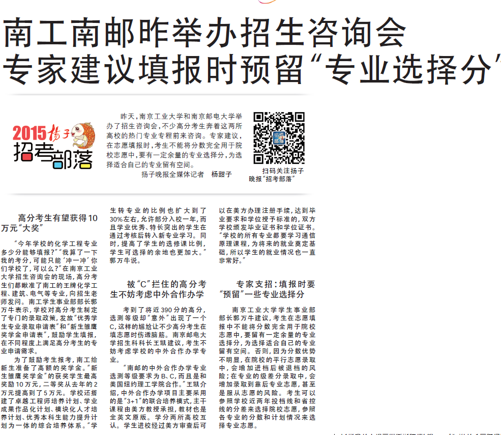【揚(yáng)子晚報(bào)】南工南郵昨舉辦招生咨詢會