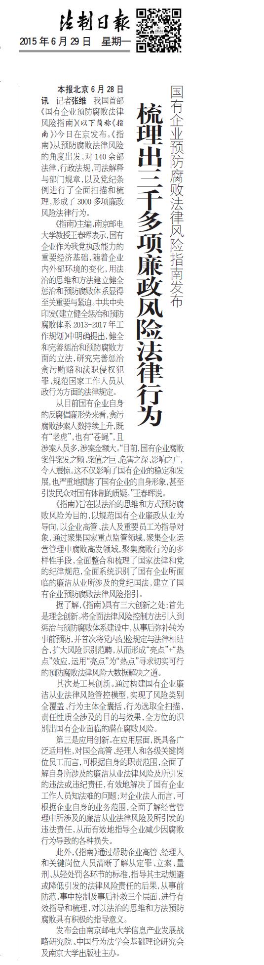 【法制日報】梳理出三千多項廉政風(fēng)險法律行為