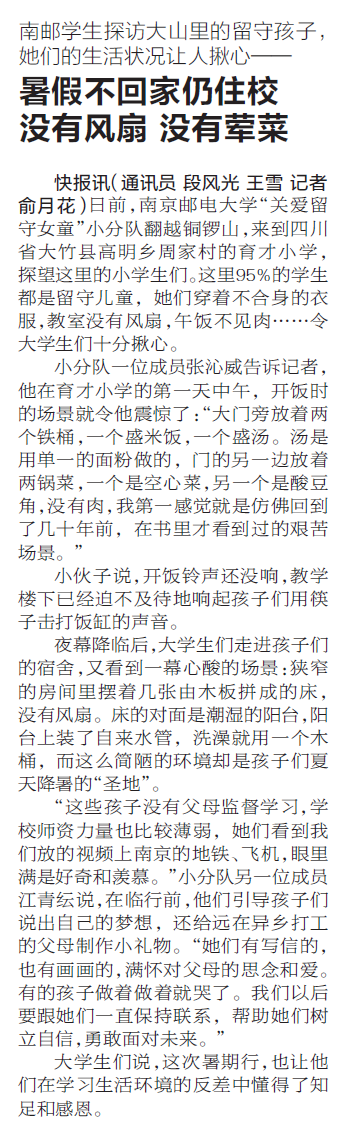 【現代快報】暑假不回家仍住校 沒有風扇 沒有葷菜