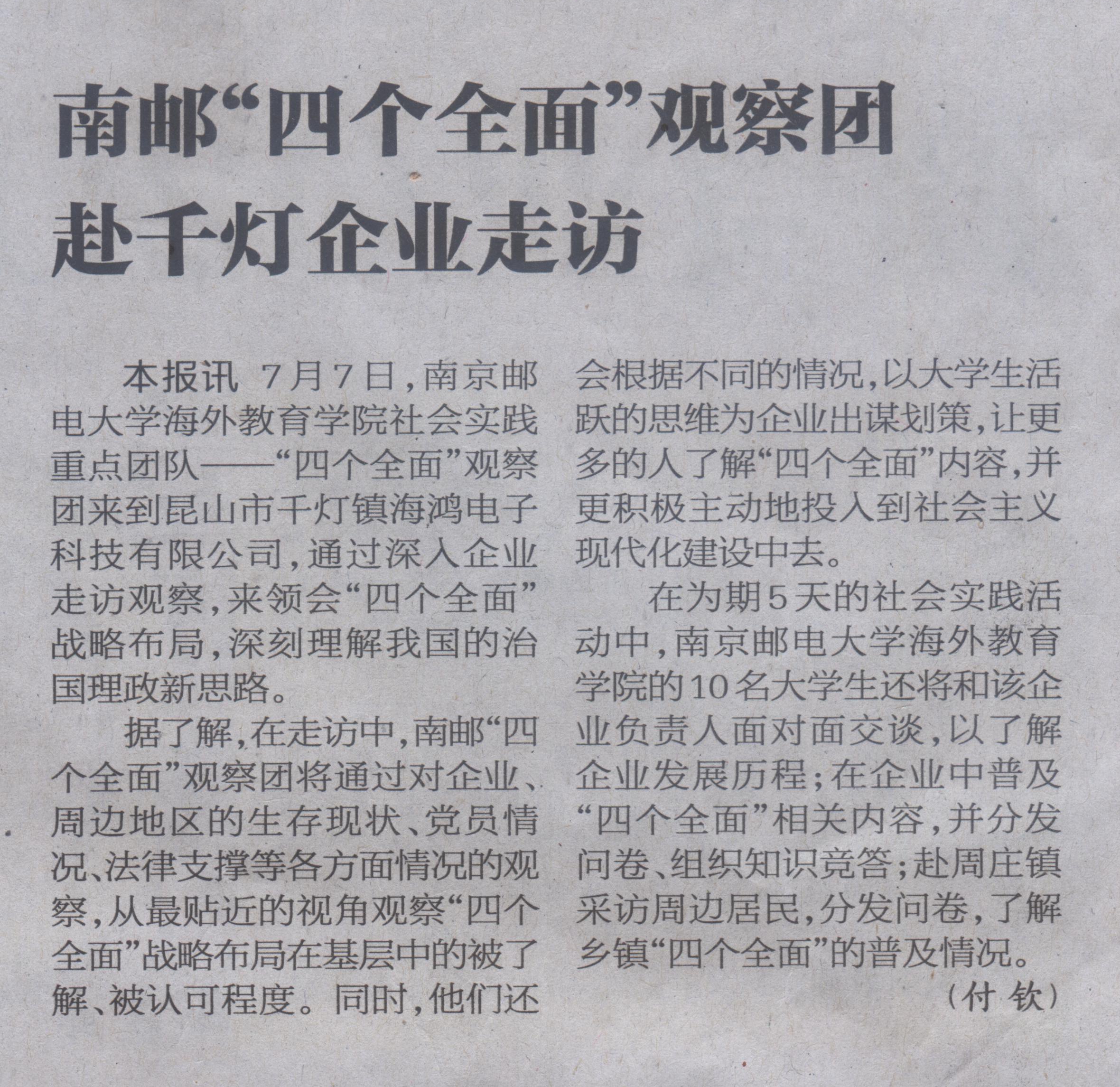 【昆山日報】南郵“四個全面”觀察團赴千燈企業走訪