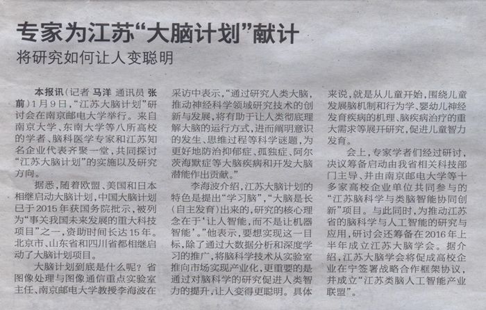 【江蘇科技報】專家為江蘇“大腦計劃”獻計