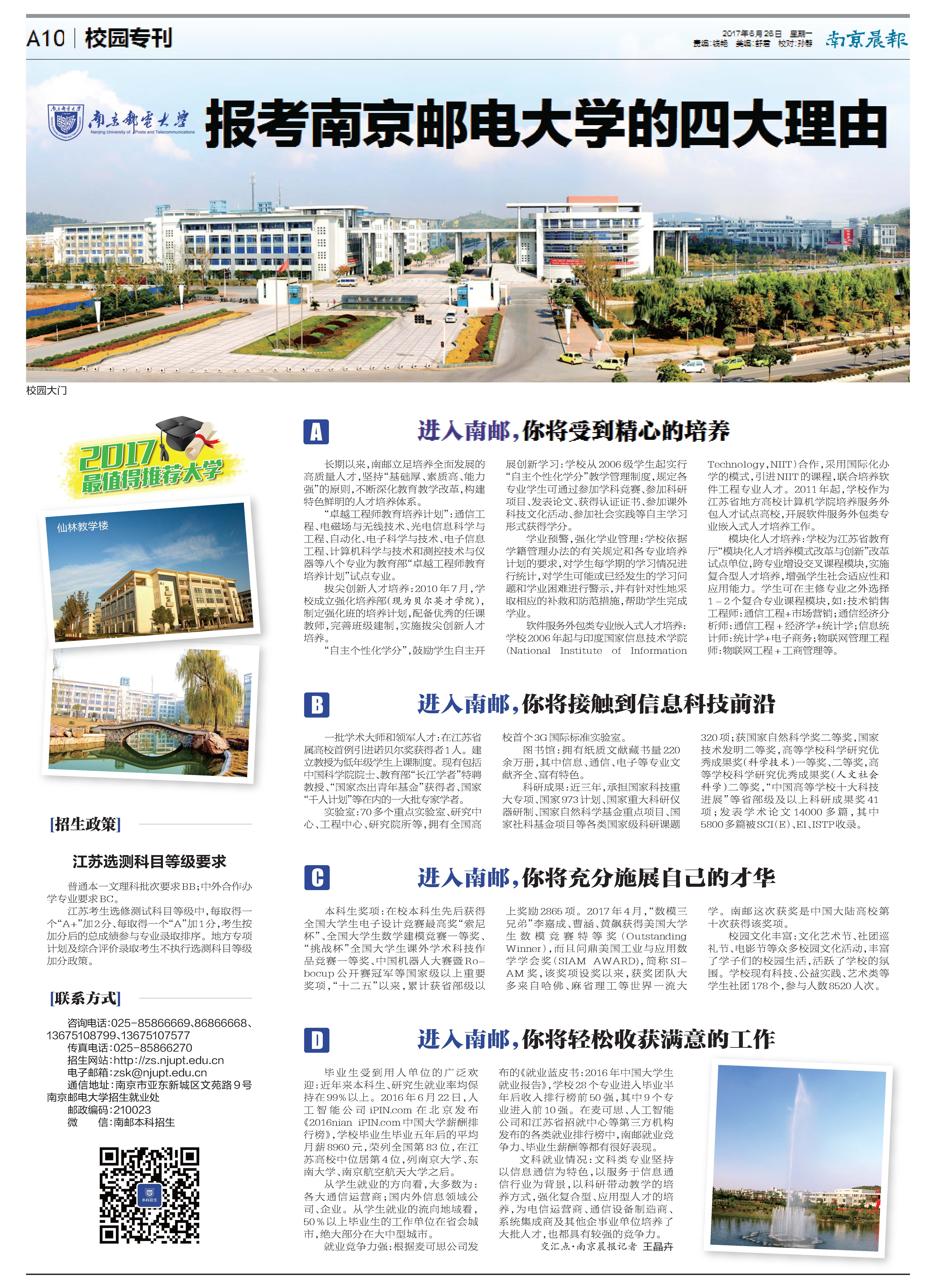 【南京晨報】報考南京郵電大學的四大理由