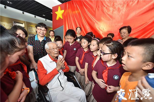 105歲的老紅軍秦華禮現(xiàn)場給孩子們講述當年的故事。