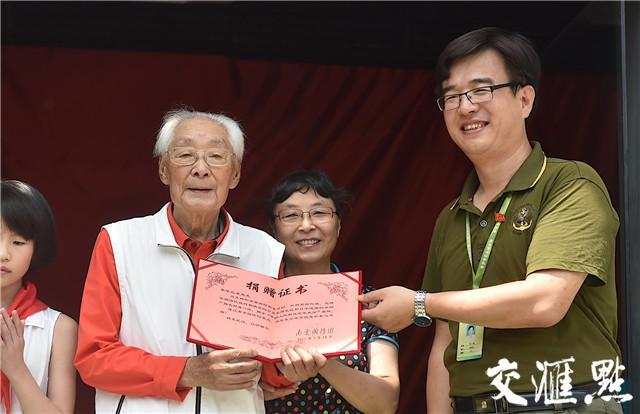105歲的老紅軍秦華禮現(xiàn)場捐贈了兩件抗戰(zhàn)文物。