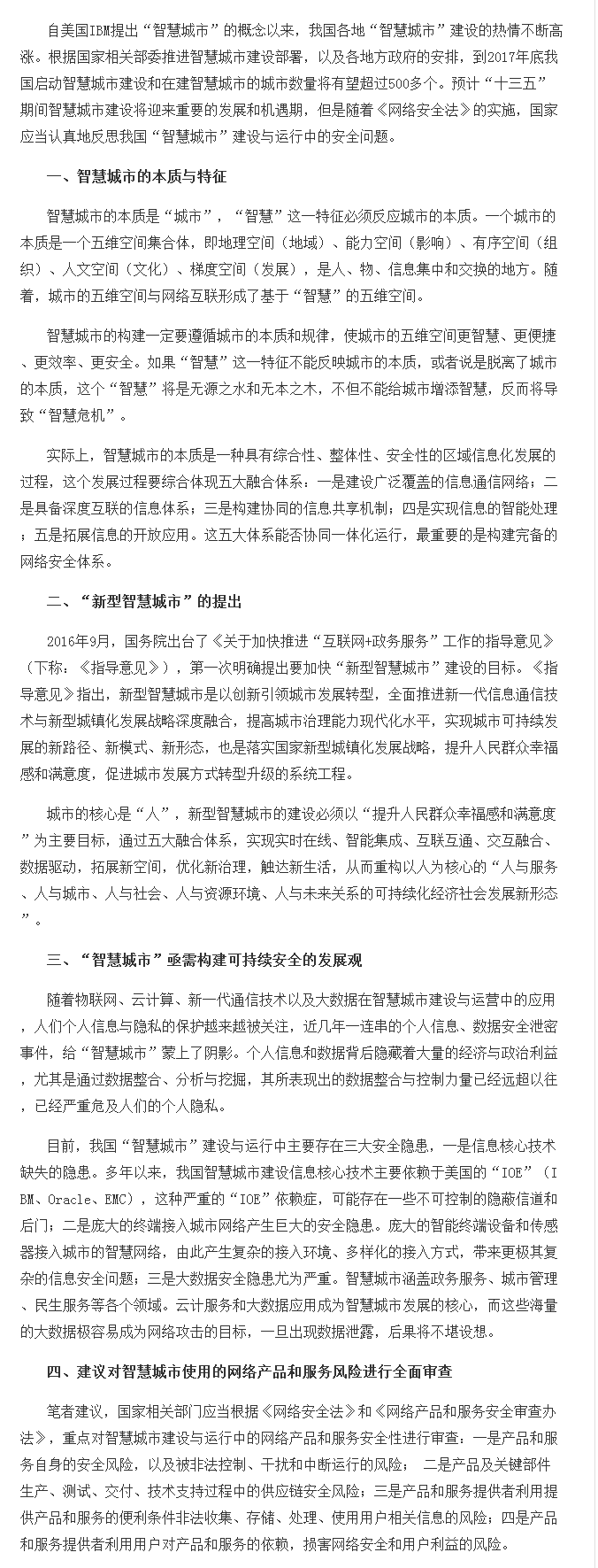【中國信息產業網】建議對“智慧城市”的網絡安全問題進行全面排查