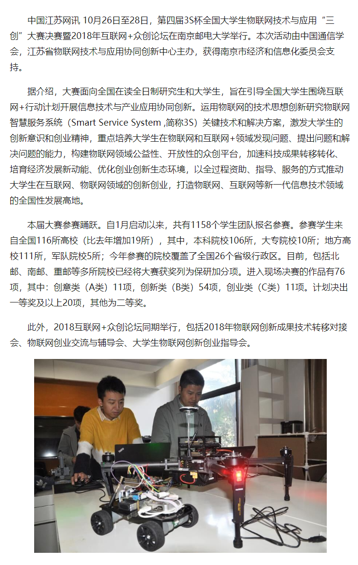 【中國江蘇網】第四屆3S杯全國大學生物聯網技術與應用“三創”大賽在南郵舉行