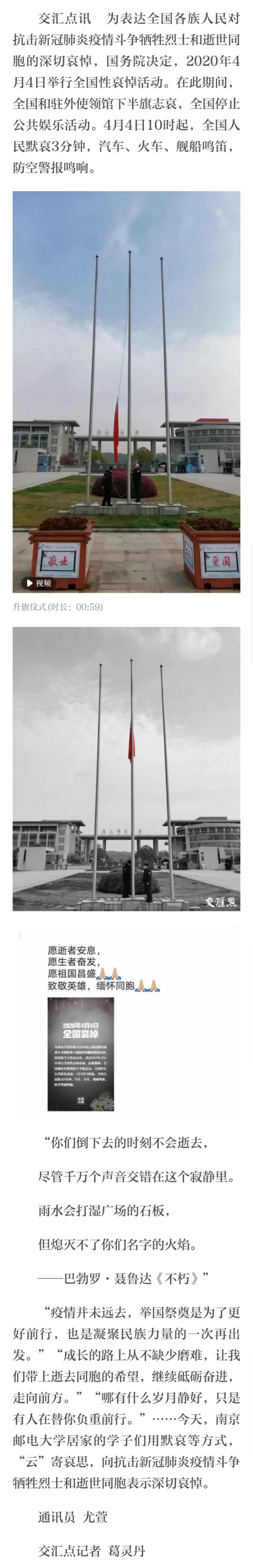 | 【交匯點】逝者安息,生者堅強!高校學子“云”寄哀思(視頻) |