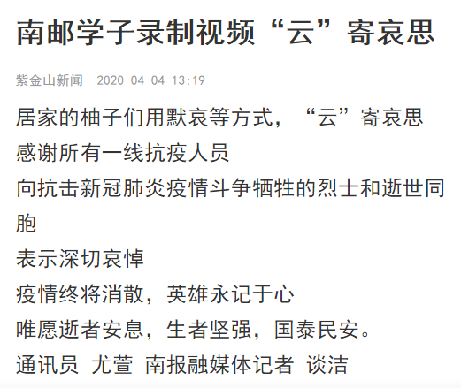 【紫金山】南郵學子錄制視頻“云”寄哀思