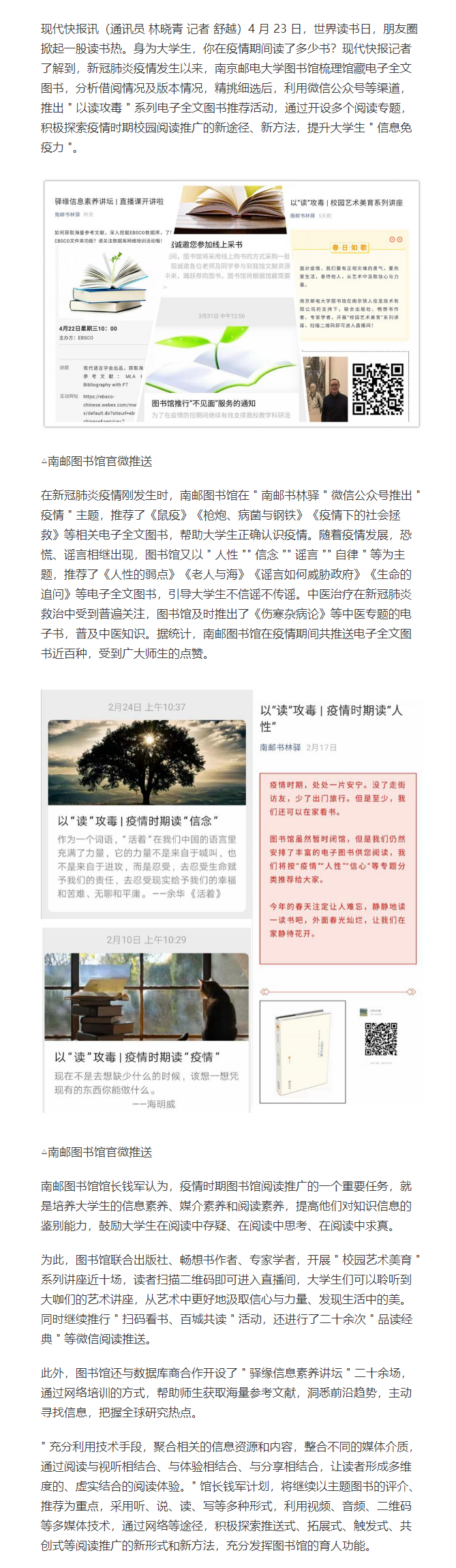 | 【現代快報網】疫情期間推送電子書近百種!南京一高?!耙宰x攻毒”系列獲師生點贊 |
