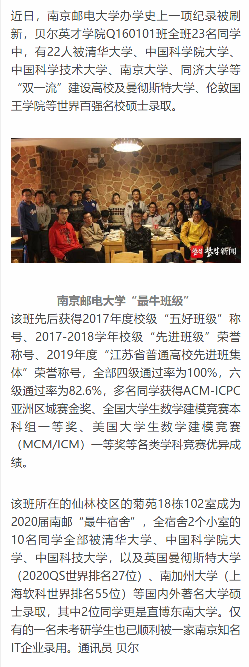 | 【揚子晚報客戶端】高校“最牛班級”來啦,有多牛?23人中22人被國內外名校錄取 |