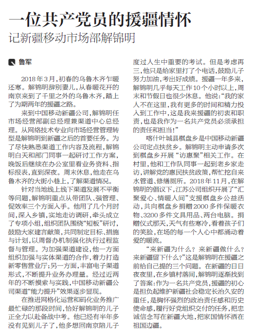 【人民郵電報】一位共產黨員的援疆情懷