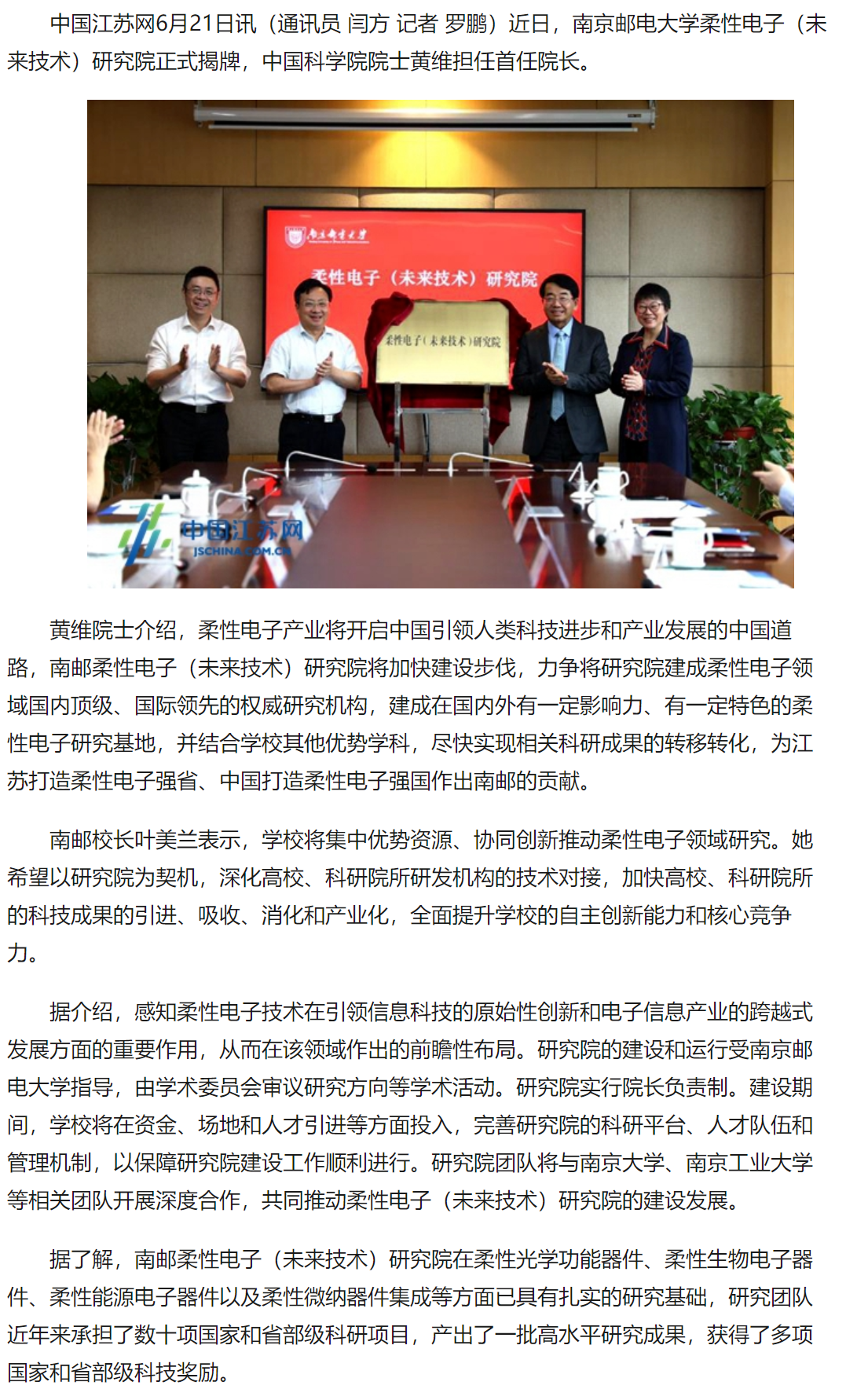 | 【中國江蘇網】南郵成立柔性電子(未來技術)研究院 |
