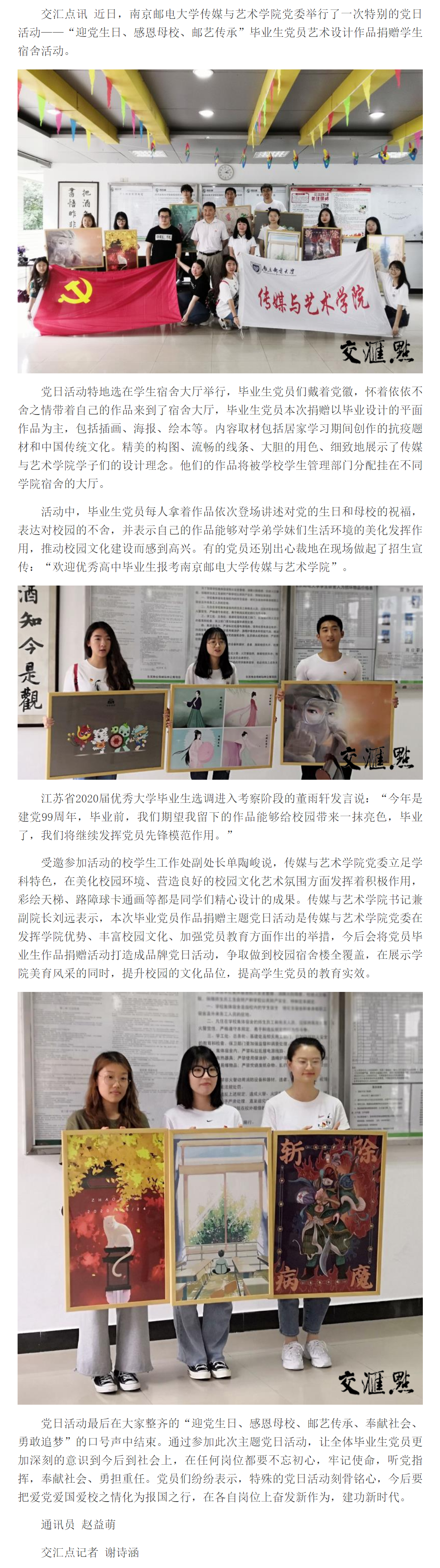 | 【新華日?qǐng)?bào)客戶(hù)端】愛(ài)黨 感恩 傳承,南郵畢業(yè)生黨員將抗疫畫(huà)作留給學(xué)弟學(xué)妹 |