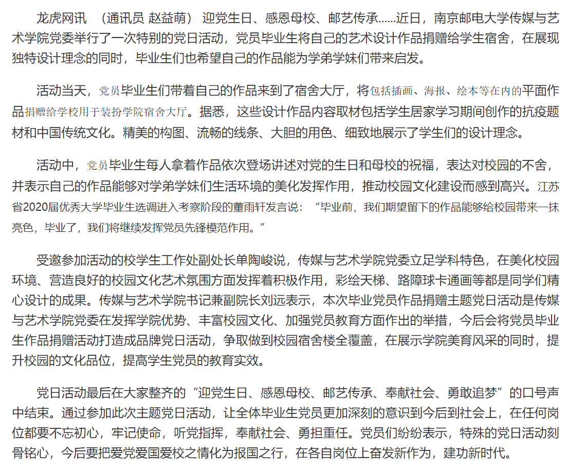 | 【龍虎網】抗疫畫作扮靚學生宿舍 南郵黨員畢業生將畢設作品留給學弟學妹 |