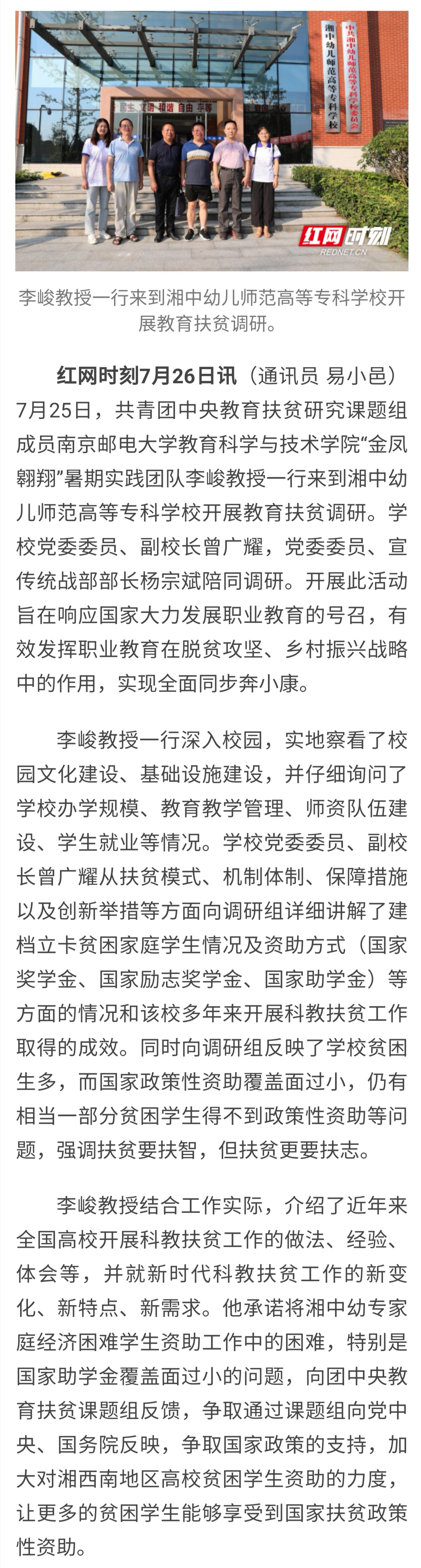 | 【紅網時刻】共青團中央教育扶貧研究課題組成員來到湘中幼兒師范高等專科學校開展教育扶貧調研 |