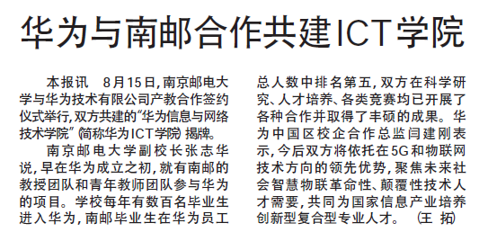 | 【新華日報】華為與南郵合作共建ICT學院 |