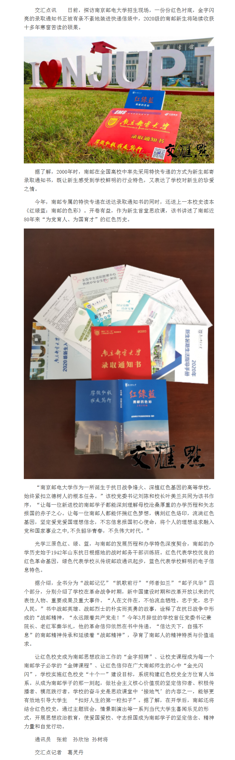 | 【新華日報客戶端】紅綠藍?新生首堂思政課“裝”進了錄取通知書! |