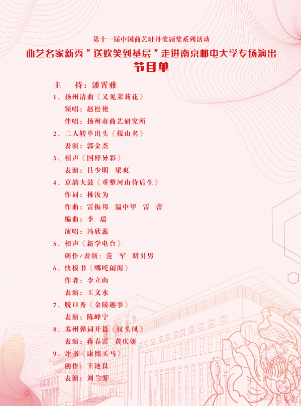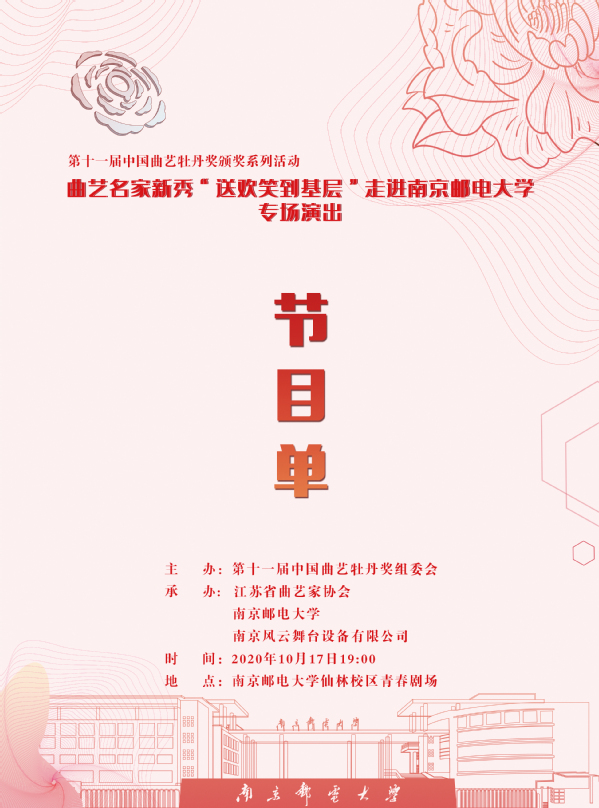 | 關于舉辦曲藝名家新秀“送歡笑進基層”走進南京郵電大學專場演出的通知 |
