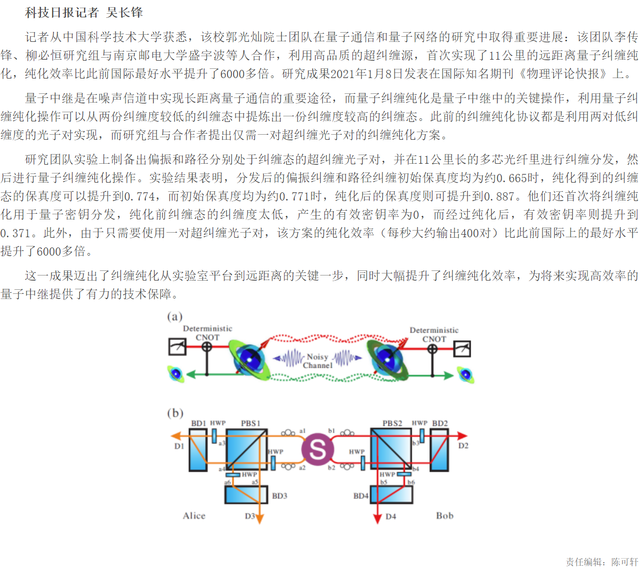 | 【科技日報網】我國科學家首次實現遠距離量子糾纏純化 |