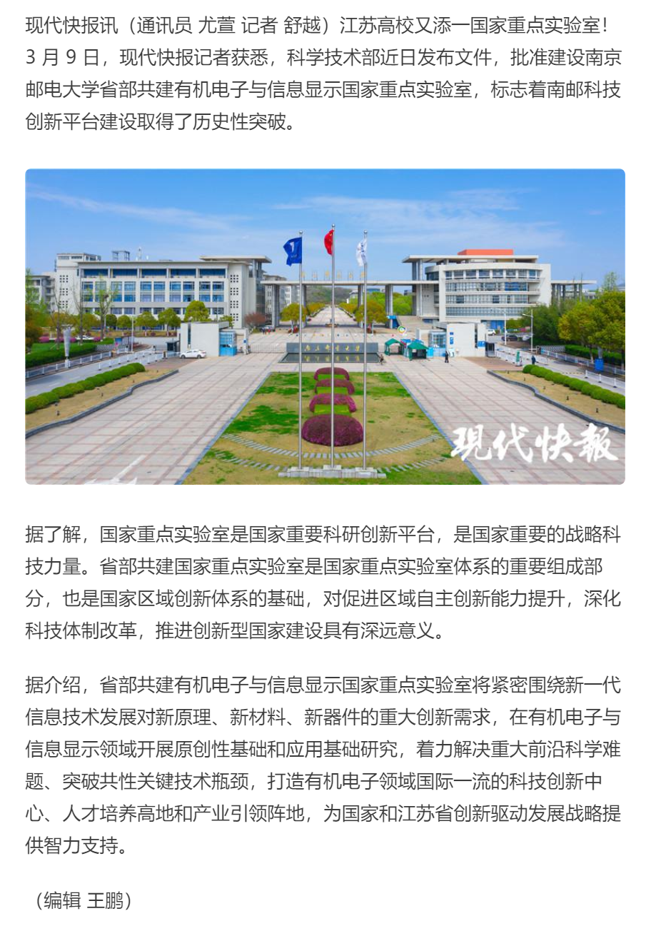 | 【現代快報】省部共建!南郵這個國家重點實驗室正式獲批建設 |