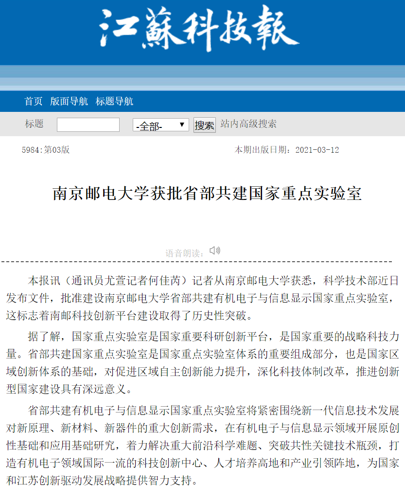 | 【江蘇科技報】南京郵電大學獲批省部共建國家重點實驗室 |