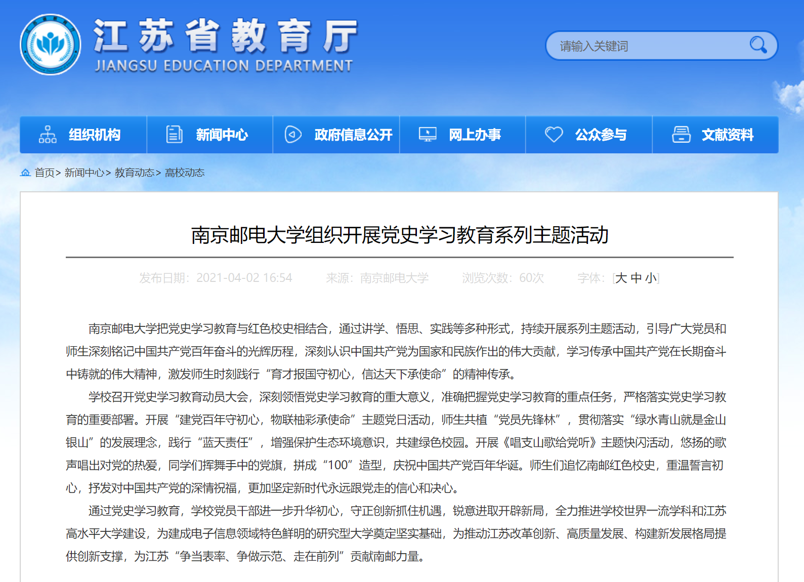 【省教育廳官網】南京郵電大學組織開展黨史學習教育系列主題活動