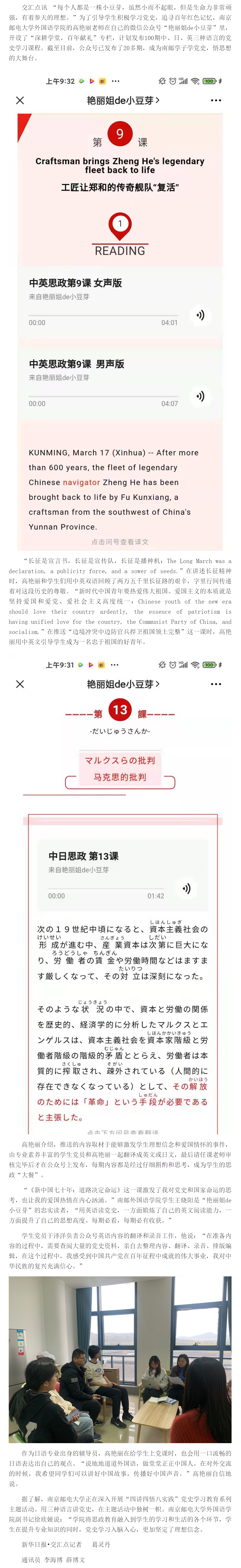 【新華日報客戶端】三種語言講黨史,南郵輔導員用心培養“小豆芽”