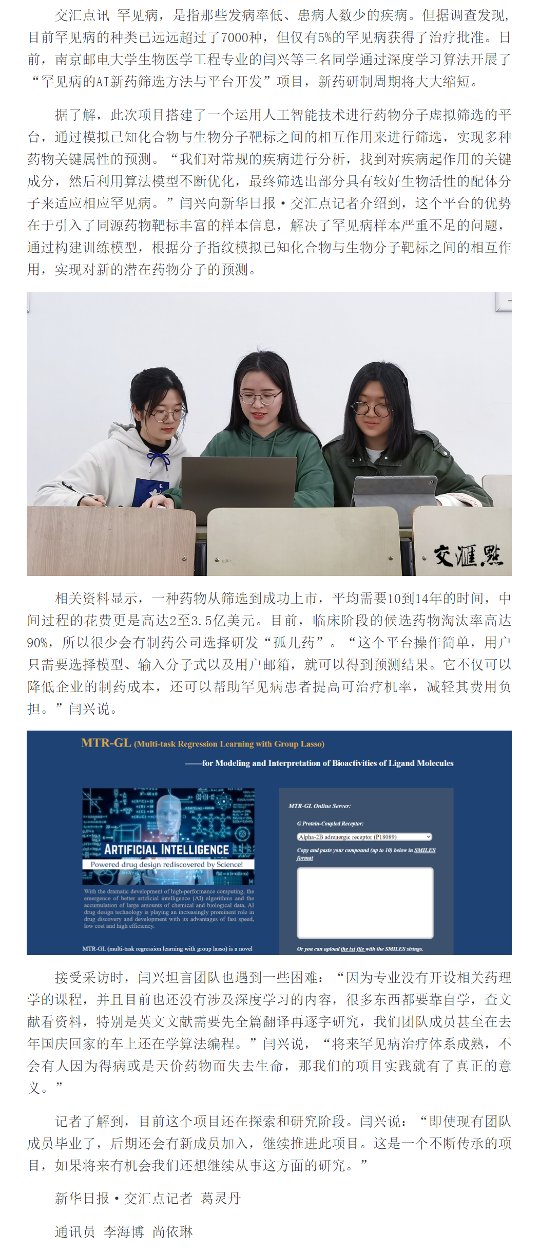 | 【新華日報客戶端】AI助力罕見病!這個科研團隊做了“新藥篩選” |