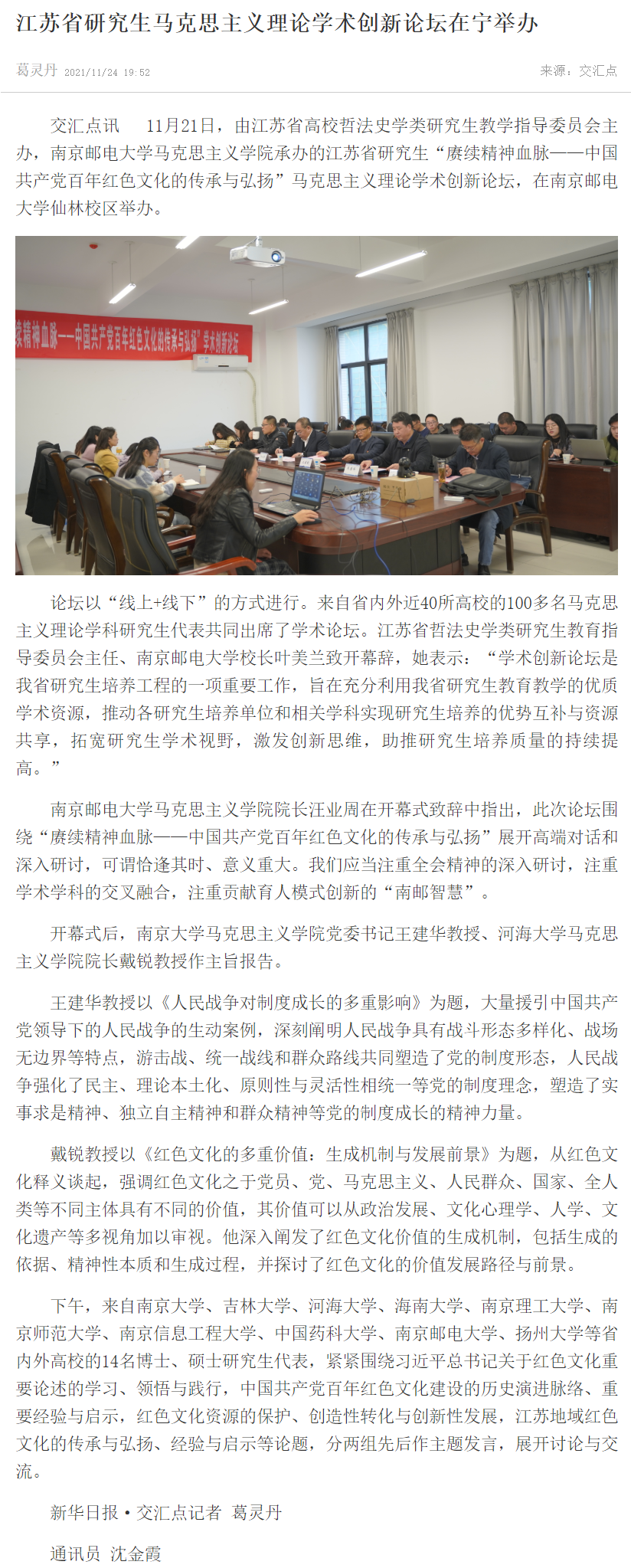 | 【新華日報客戶端】江蘇省研究生馬克思主義理論學術創新論壇在寧舉辦 |