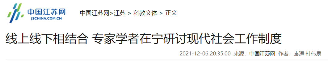 | 【中國江蘇網】線上線下相結合 專家學者在寧研討現代社會工作制度 |
