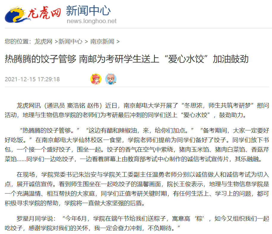 | 【龍虎網】熱騰騰的餃子管夠 南郵為考研學生送上“愛心水餃”加油鼓勁 |