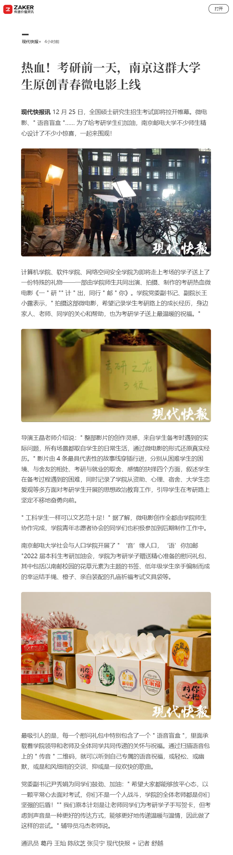 | 【現代快報全媒體】熱血!考研前一天,南京這群大學生原創青春微電影上線 |