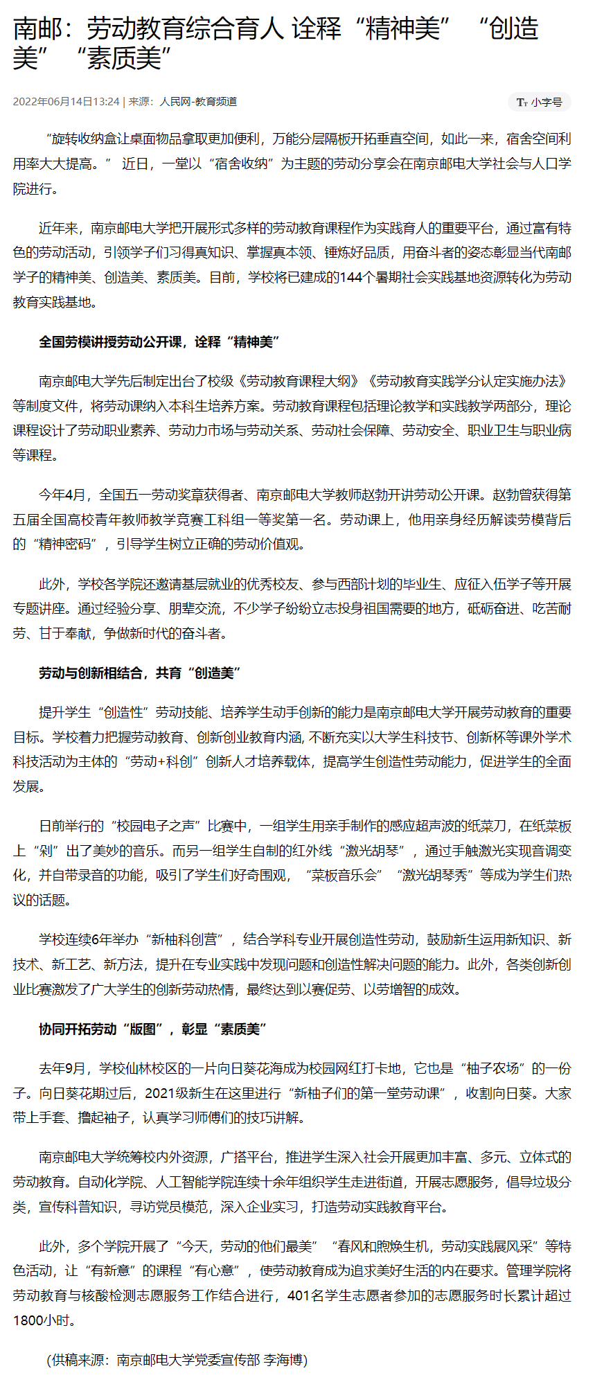 | 【人民網(wǎng)】南郵:勞動(dòng)教育綜合育人 詮釋“精神美”“創(chuàng)造美”“素質(zhì)美” |