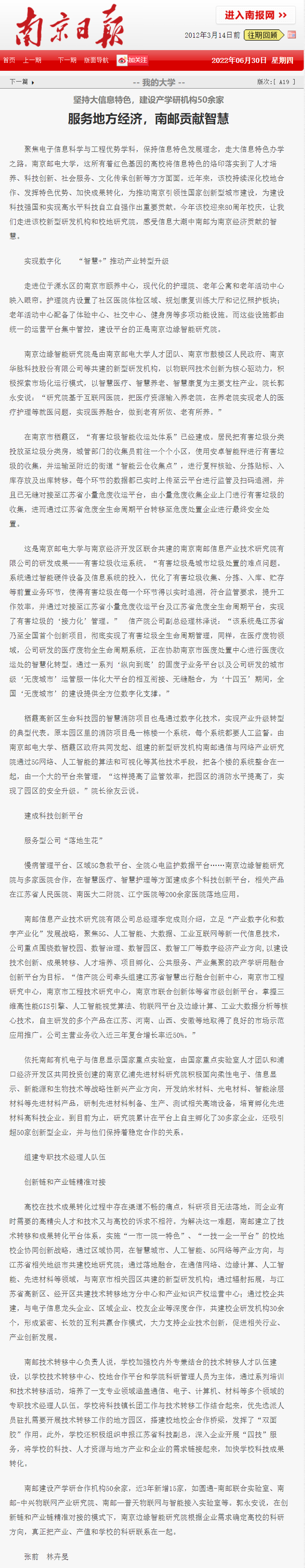 | 【南京日報】服務地方經濟,南郵貢獻智慧 |