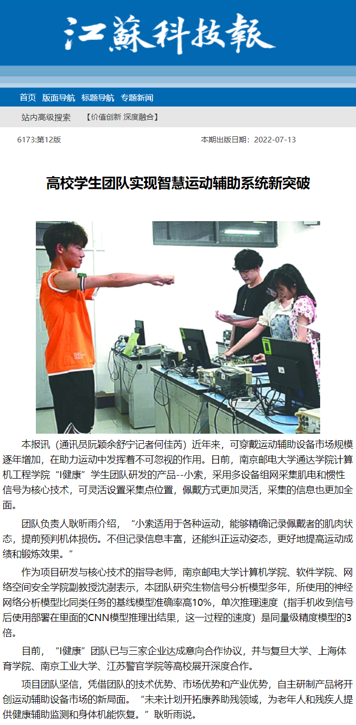 | 【江蘇科技報】高校學生團隊實現智慧運動輔助系統新突破 |
