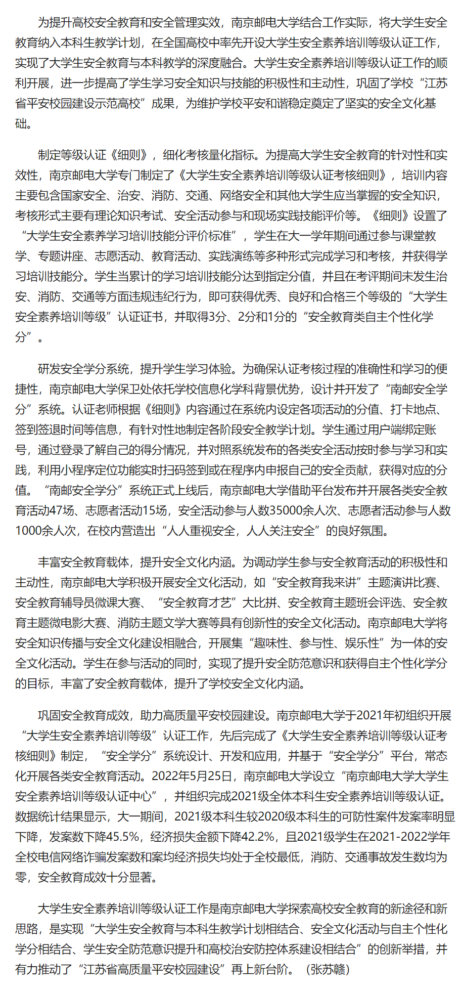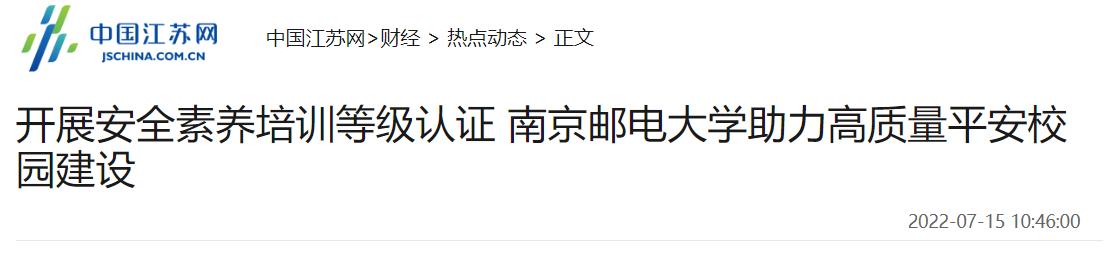 | 【中國江蘇網】開展安全素養培訓等級認證 南京郵電大學助力高質量平安校園建設 |