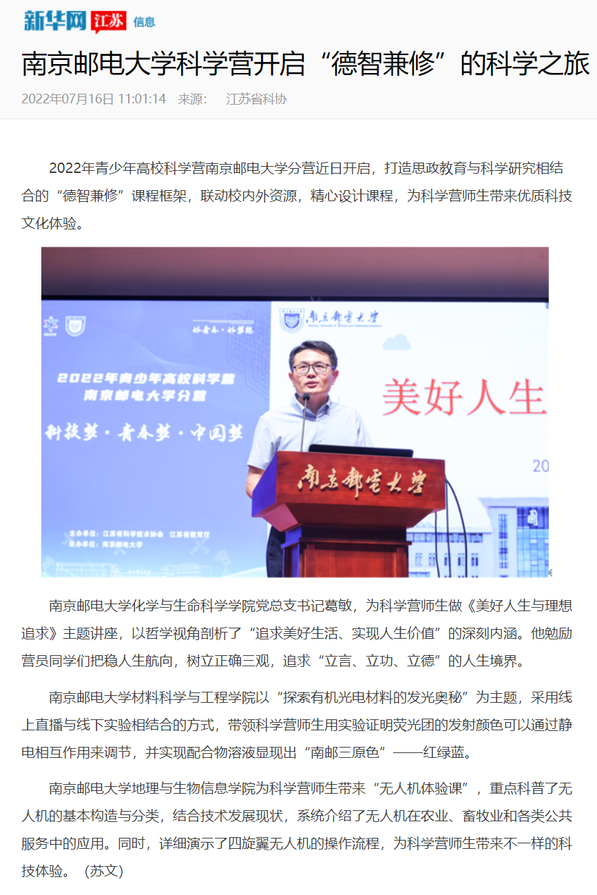 | 【新華網江蘇】南京郵電大學科學營開啟“德智兼修”的科學之旅 |