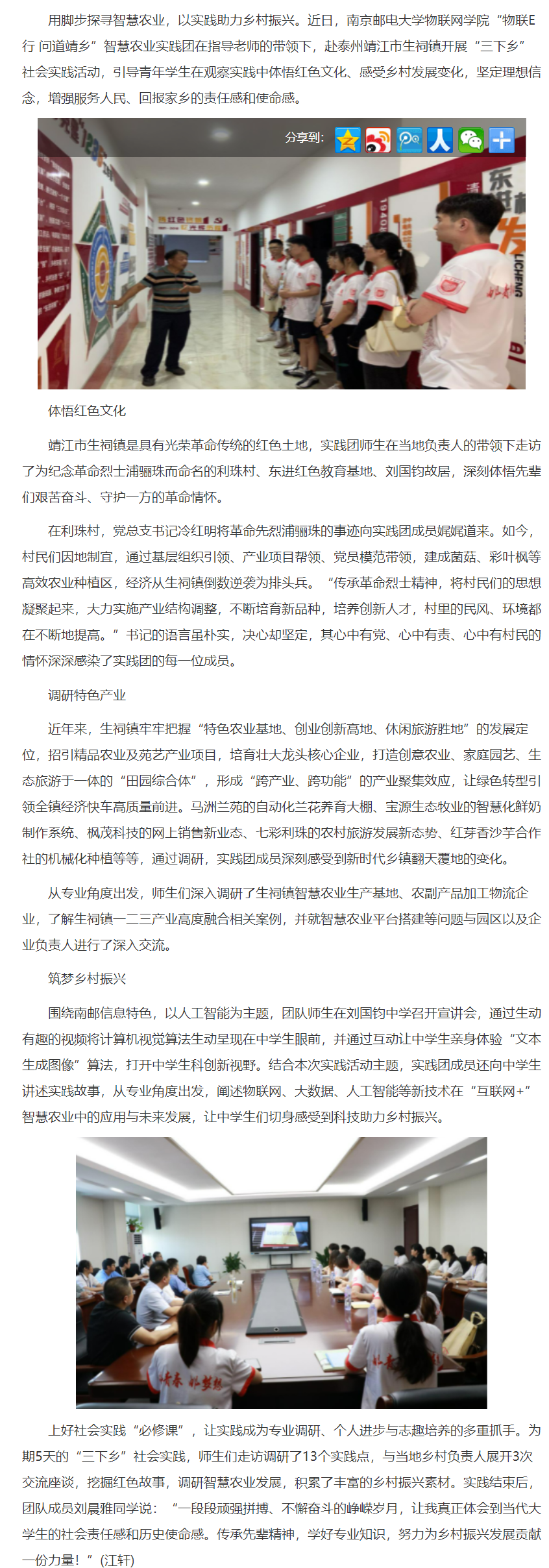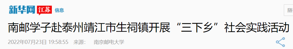 | 【新華網(wǎng)江蘇】南郵學(xué)子赴泰州靖江市生祠鎮(zhèn)開(kāi)展“三下鄉(xiāng)”社會(huì)實(shí)踐活動(dòng) |