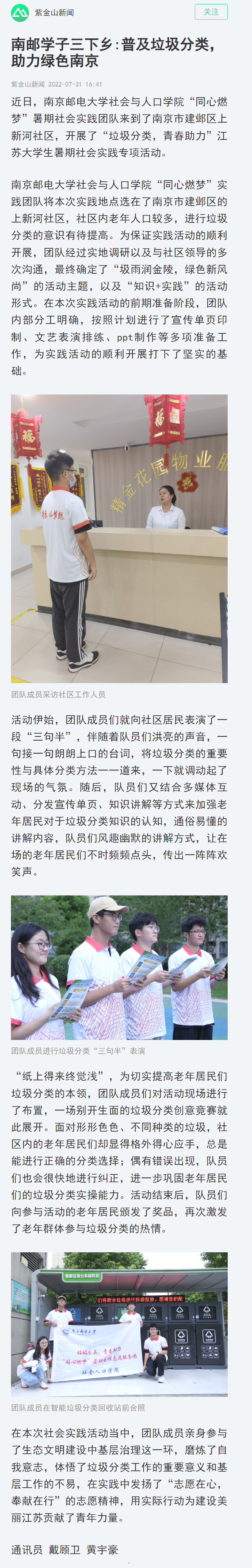 【南京日報客戶端】南郵學子三下鄉:普及垃圾分類,助力綠色南京