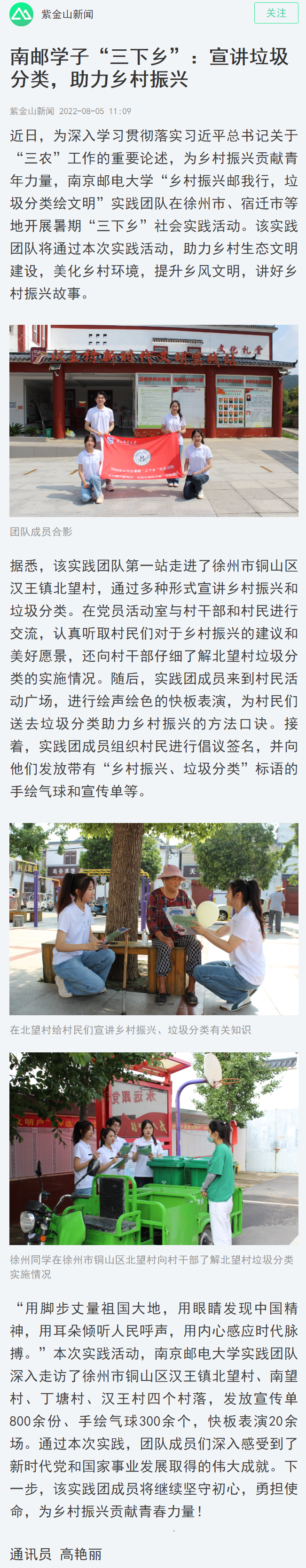 | 【南京日報客戶端】南郵學子“三下鄉”:宣講垃圾分類,助力鄉村振興 |