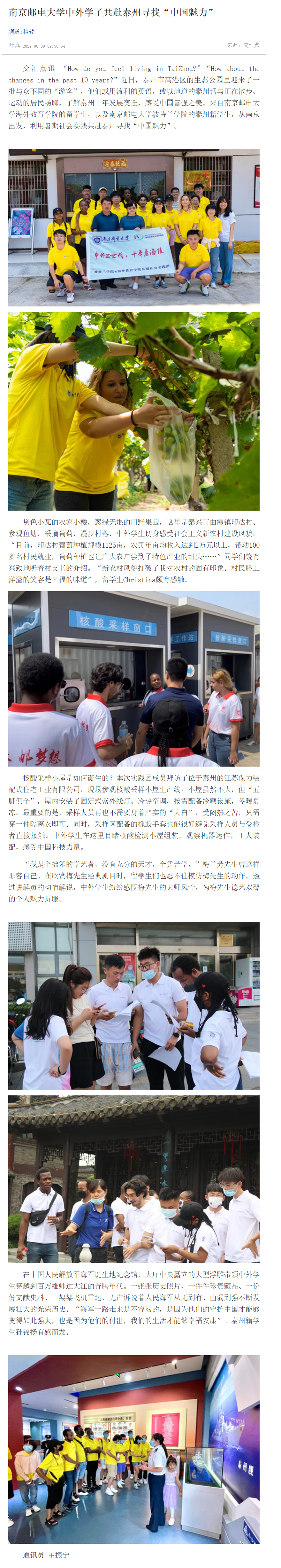 【新華日報客戶端】南京郵電大學中外學子共赴泰州尋找“中國魅力”