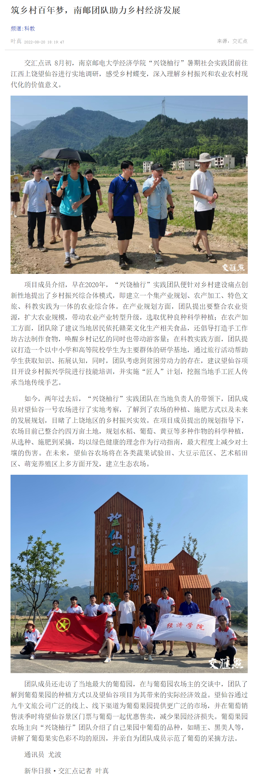 | 【新華日報客戶端】筑鄉村百年夢,南郵團隊助力鄉村經濟發展 |