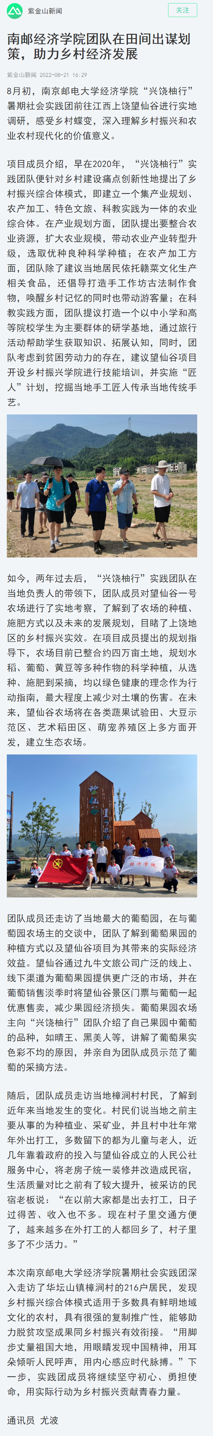 | 【南京日報客戶端】南郵經濟學院團隊在田間出謀劃策,助力鄉村經濟發展 |