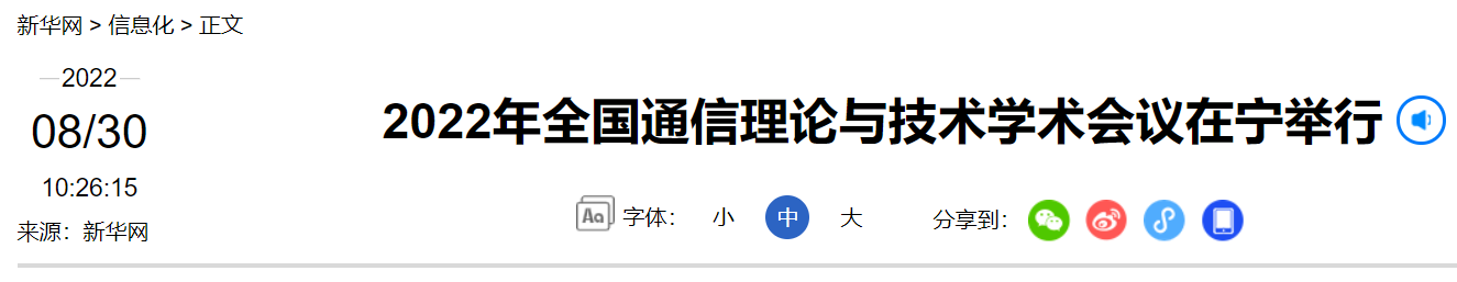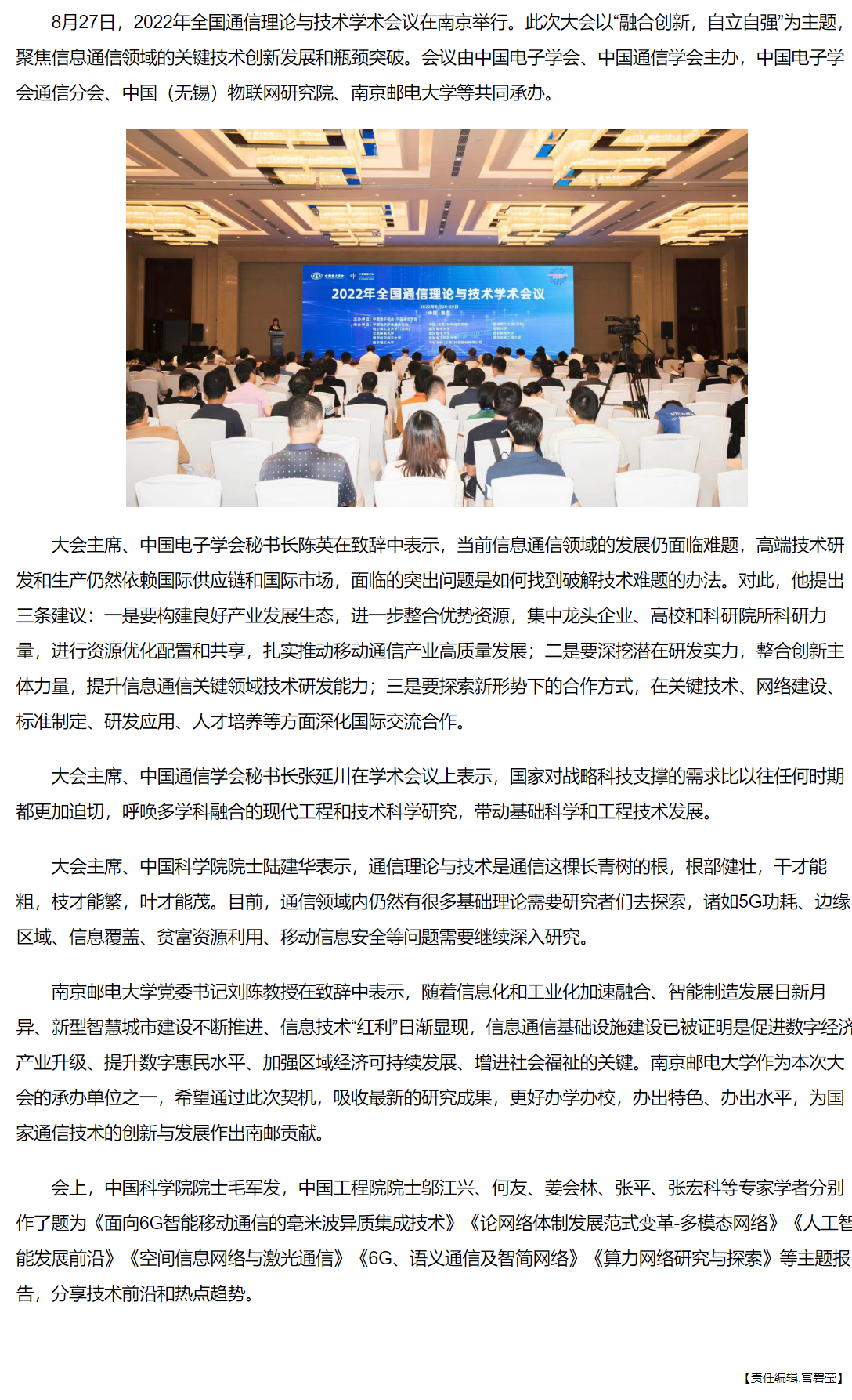 | 【新華網(wǎng)】2022年全國(guó)通信理論與技術(shù)學(xué)術(shù)會(huì)議在寧舉行 |